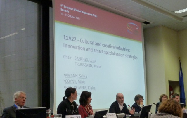 Moderado por Xavier Troussard, Jefe de la unidad de política cultural, diversidad y diálogo intercultural, este seminario contó con cinco presentaciones. Globalmente, se habló mucho conceptualmente de innovación y estrategias inteligentes de especialización (smart specialisation strategies) y poco en realidad de las industrias culturales y creativas, salvo en una presentación bastante enfocada por parte de Ragnar Siil, subsecretario de Estado del Ministerio de Cultura de Estonia y un ejemplo concreto desde una administración territorial en Alemania (Landkreis Lüchow-Dannenberg) presentado por Sylvia Ammann.