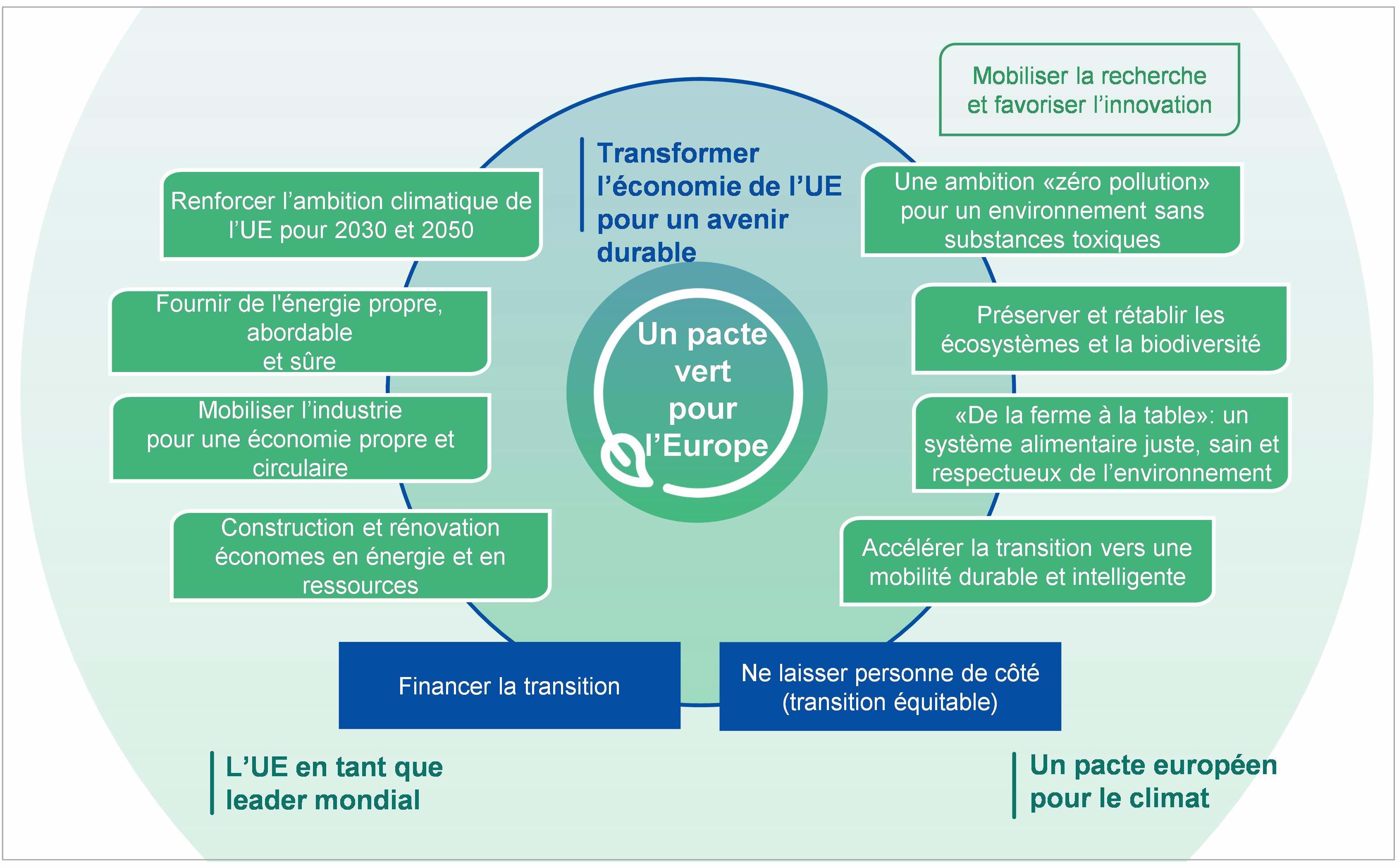 Nonobstant le manque d’une approche transfrontalière spécifique, ces dernières années l’évolution stratégique et technique des politiques européennes en matière d’EC a largement agi sur son développement au sein des États membres – par exemple avec le « Nouveau plan d’action en faveur de l’économie circulaire » adopté en 2020. Parallèlement, les régions frontalières se sont vu attribuer un rôle dans la mise en place du Pacte Vert pour la transition écologique pour l’Europe; dans ce sens, l’intervention de l’UE au travers les programmes Interreg de la politique de cohésion 2021-2027 décline localement les objectifs du Pacte Vert.